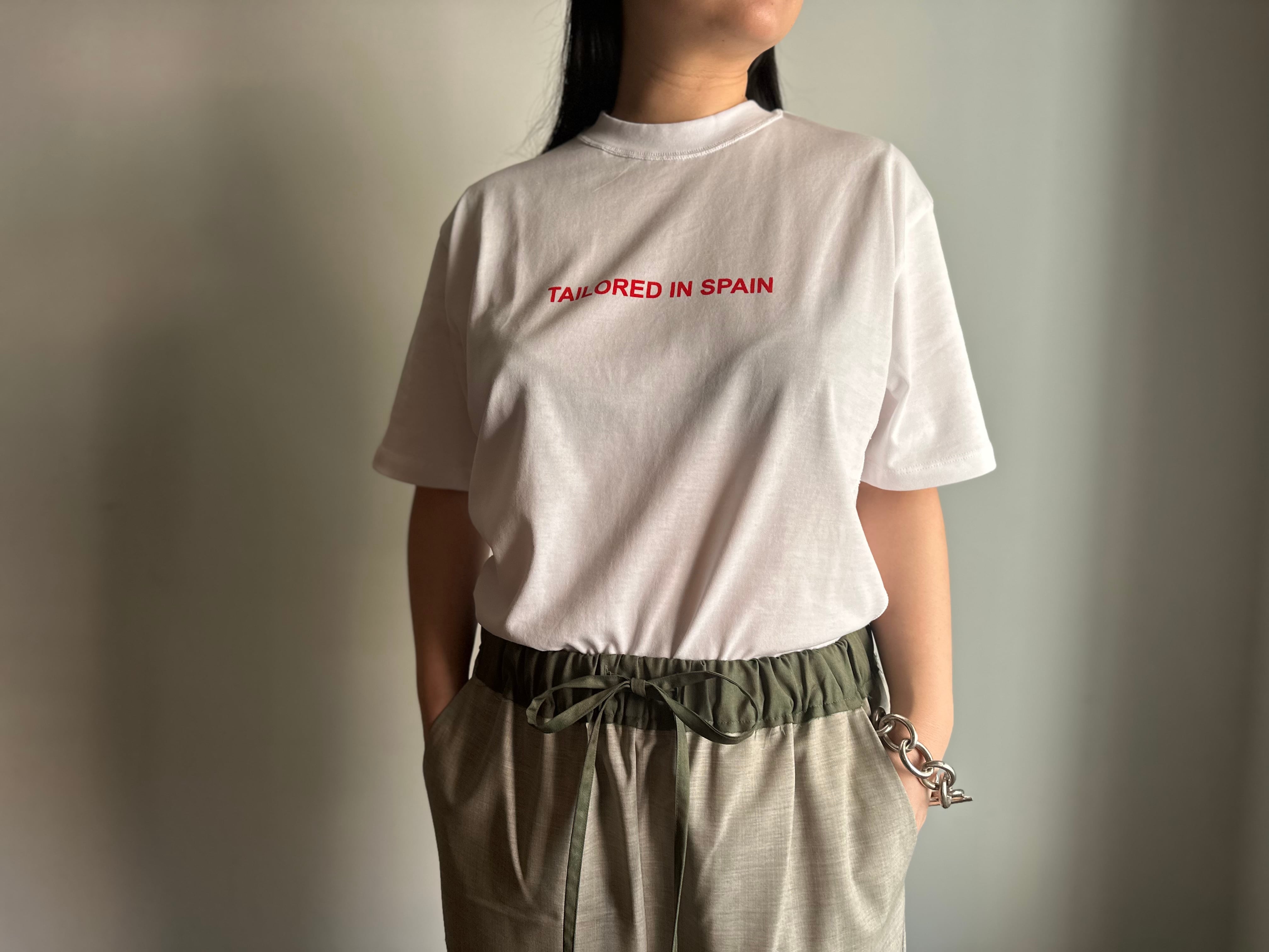 ホワイトカラーのボディに朱赤の"TAILORED IN SPAIN "ロゴがポイントのTee。