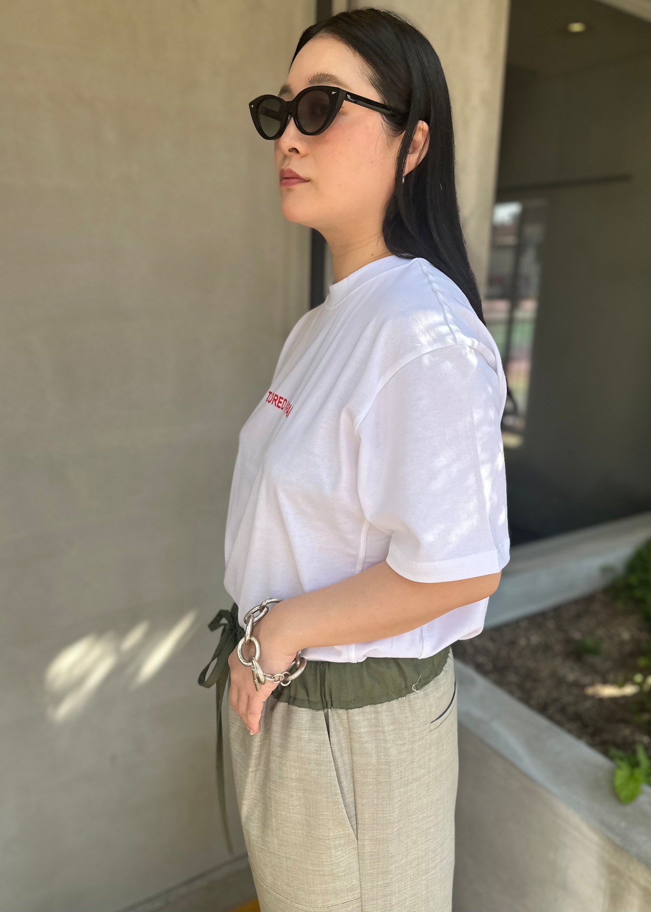 ネックのリブ幅を広く持たせることでお顔を小さく見せてくれたり、シンプルに見えて実験的なギミックが随所に見られるソニアカラスコらしさの詰まったTシャツです!